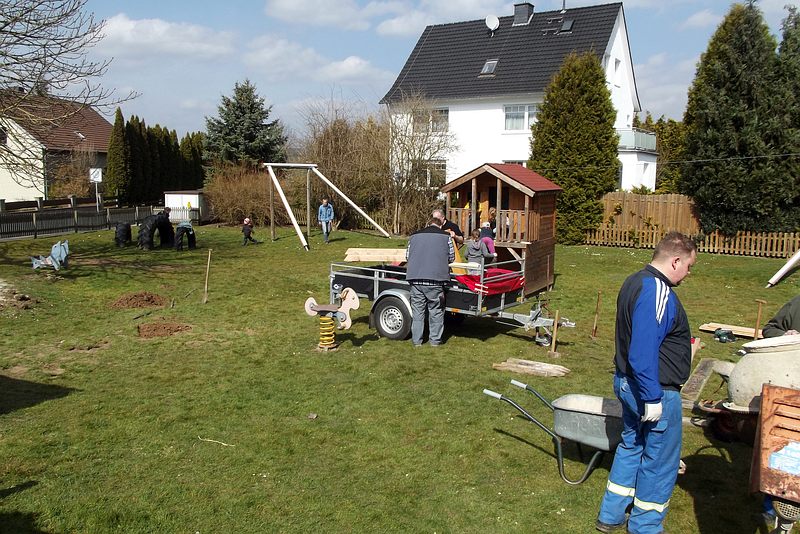 Die Kleinen testen inzwischen, ohne Leiter ins Spielhaus zu kommen ...
